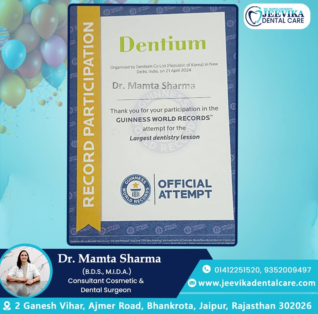 Best dental clinic in bhankrota!! Dr. Mamta is an excellent dentist and greeted us with respect and dignity and provide the best dental treatment possible. She will not be satisfied until her patient is happy!!